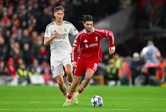 第61分鐘,貝林厄姆的犯規(guī)送給利物浦任意球,索博斯洛伊的傳球落點(diǎn)精準(zhǔn),麥卡利斯特?fù)尩角包c(diǎn),終于攻破了庫(kù)爾圖瓦的十指關(guān)。
