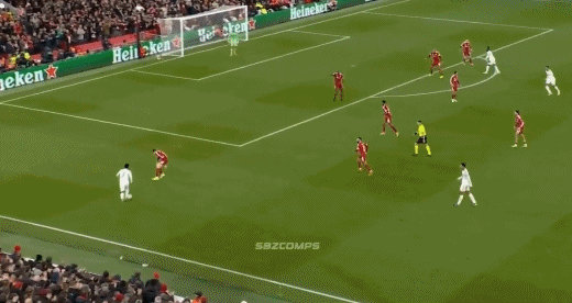 利物浦反擊中,布拉德利帶球狂奔,制造維尼修斯犯規(guī);