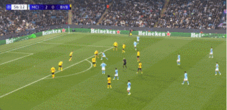 下半場回到場上,曼城繼續(xù)壓著多特在踢比賽。