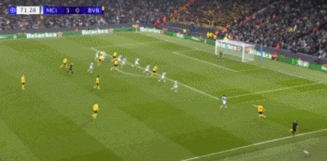 開場之后,曼城依靠主場和實力的雙重優(yōu)勢,進攻端壓著打,多特只能退縮陣型防守,但還是守不住。