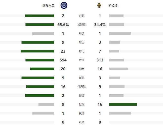 第19分鐘比塞克又摔倒在了客隊禁區(qū),主裁判第一時間判罰點球,但回看VAR后點球又被取消,場面上略顯被動的阿拉木圖凱拉特第43分鐘差點打破場上平衡,薩特帕耶夫大禁區(qū)前沿的遠射擊中門框被彈出,逃過一劫的藍黑軍團,在半場結(jié)束前終于取得進球,勞塔羅亂戰(zhàn)中在對方禁區(qū)完成兩連擊,幫助國米帶著1-0的優(yōu)勢,回到了中場更衣室。