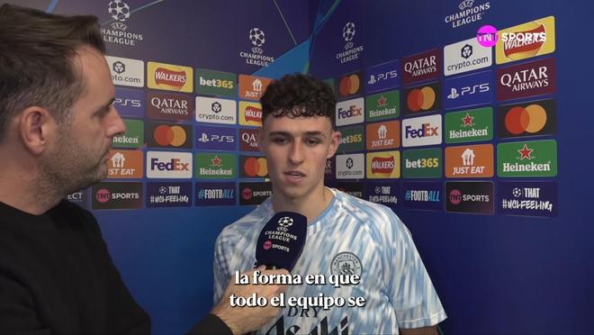 本賽季歐冠聯(lián)賽階段第4輪,曼城主場(chǎng)4-1戰(zhàn)勝多特蒙德。福登接受瞭TNT體育的賽後采訪。