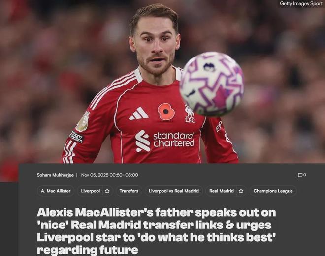 父親回應(yīng)麥卡利斯特和皇馬傳聞!C羅:奪得世界杯不是我的夢想!