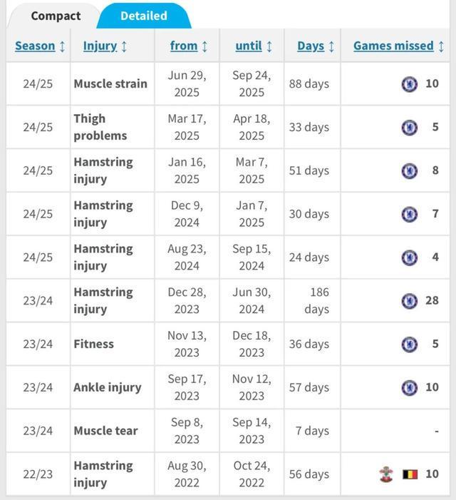 英超頭號玻璃人!加盟切爾西2年傷停9次 從未踢滿過全場