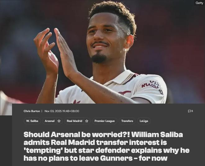 在被問到皇馬今夏的興趣時,薩利巴說:“當然,像這樣的俱樂部對你感興趣時,確實真的很有吸引力……但我在考慮任何其他事情之前首先想要和阿森納一起贏得冠軍?!?/p>