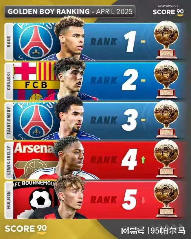 此一時(shí)彼一時(shí),羽翼豐滿的姆巴佩變成了“別人家的孩子”,然而巴黎對(duì)后浪的培養(yǎng)計(jì)劃從沒(méi)有停歇過(guò)。最新一個(gè)冒出來(lái)的是2005年出生的德西雷·杜埃,他在最近榮膺了2025年歐洲金童獎(jiǎng)。