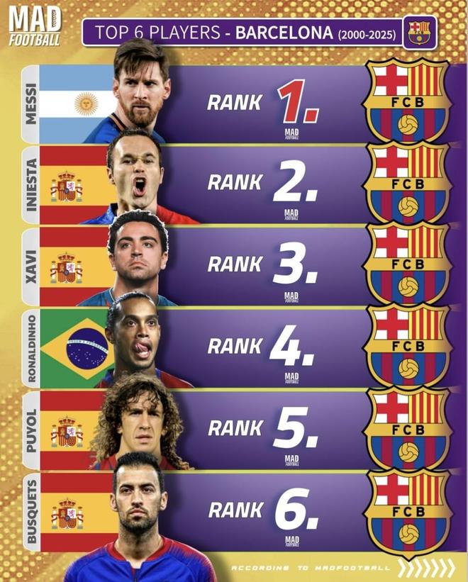 近日,MAD Football 發(fā)布了《2000—2025 巴塞羅那&皇家馬德里前六球員榜》。巴薩榜首是梅西,皇馬這邊則由C羅領銜。榜單一出就炸鍋:有人質疑巴薩陣容是否“情懷加成”,把防線價值低估了?也有人反駁皇馬更看重結果導向,“總進球”和“總冠軍”到底哪個更能代表貢獻?還有聲音認為齊達內(nèi)的球員時期是否被教練榮譽“帶飛”?