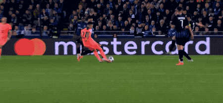 巴薩氣勢如虹,殺得興起,10名球員都壓過半場。第16分鐘,布魯日打出經(jīng)典的快速反擊,從本方禁區(qū)大腳解圍到進球,全部都是一腳傳球。