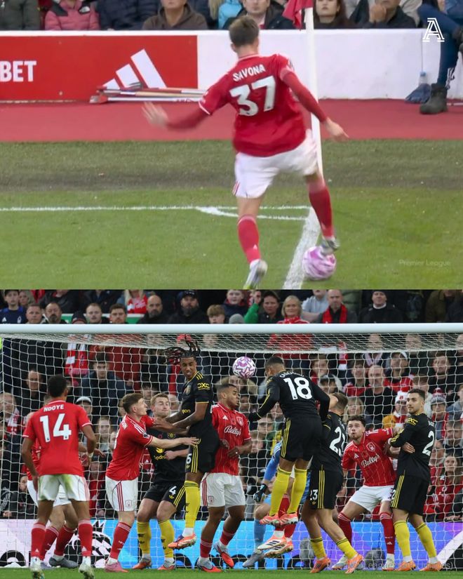森林對卡塞米羅首開紀錄的角球判罰表示不滿。薩沃納在與舍什科的空中對抗中占上風(fēng),然後試圖將球留在界內(nèi)。