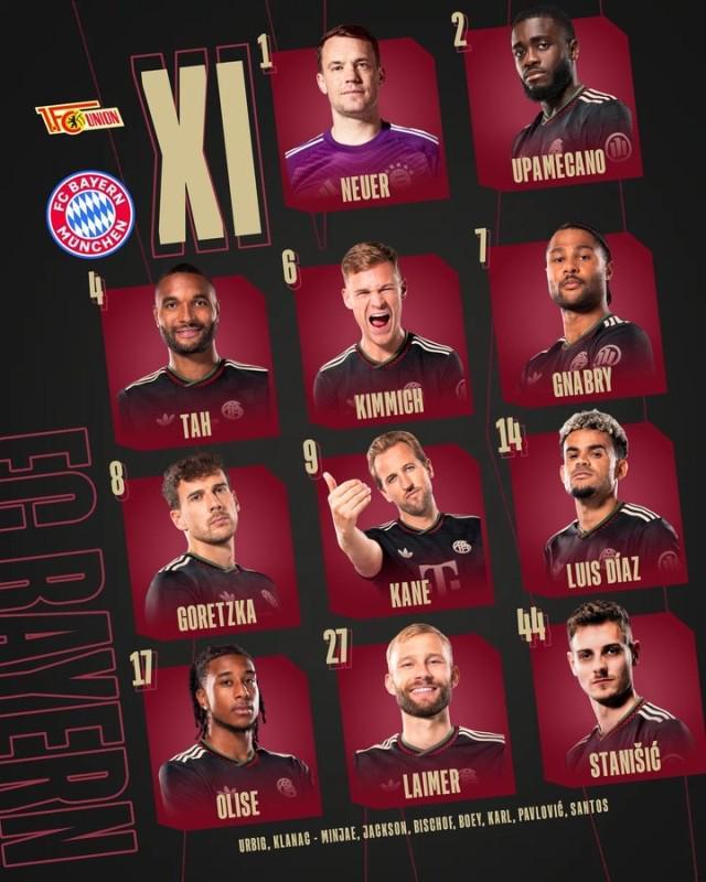 拜仁首發(fā):凱恩、路易斯·迪亞斯出戰(zhàn)