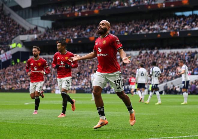 第32分鐘,熱刺後防線一片混亂,迪亞洛禁區(qū)右側(cè)傳中,姆伯莫後點甩頭攻門直掛死角,維卡裡奧鞭長莫及,曼聯(lián)打破僵局,1-0!
