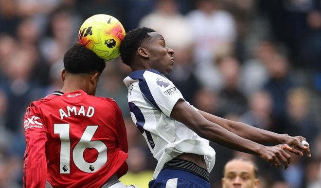 曼聯(lián)開場就出現(xiàn)失誤,拉門斯接回傳球竟然把球漏過去,幸好他的站位比較偏,皮球滾出底線,而不是滾進球門。阿莫林被嚇瞭一跳。雙方都踢得比較謹慎,創(chuàng)造出的機會很少。但曼聯(lián)把握住瞭為數(shù)不多的機會,在上半場打進唯一進球。阿馬德傳中球助攻姆伯莫頭球破門。作為10月英超月度最佳球員,姆伯莫延續(xù)瞭此前出色的狀態(tài),幫助曼聯(lián)取得領先。半場結束,曼聯(lián)1-0熱刺。