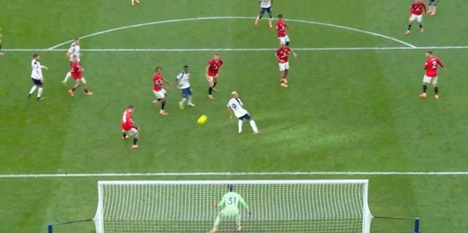 比賽剛進入補時,熱刺取得領先,右路角球攻勢中,威爾遜·奧多貝爾禁區(qū)前停球遠射,門前理查利森反越位頭球後蹭入網(wǎng),熱刺2-1曼聯(lián)。