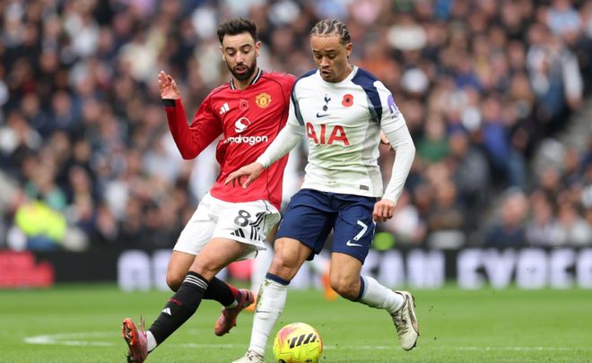上半場(chǎng),姆伯莫頭球破門幫助曼聯(lián)1-0領(lǐng)先,熱刺直到第84分鐘依靠特爾的進(jìn)球,將比分扳為1-1平。第91分鐘,裡沙利松將球蹭進(jìn)球門,幫助熱刺2-1完成反超,隨後第96分鐘,德利赫特頭球破門,幫助曼聯(lián)2-2完成絕平,終結(jié)各項(xiàng)賽事對(duì)陣熱刺四連敗。