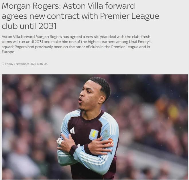 天空體育消息,維拉已經(jīng)和摩根-羅杰斯就一份6年合同達(dá)成了協(xié)議,羅杰斯目前的合同2030年到期,新合同則是2031年到期。