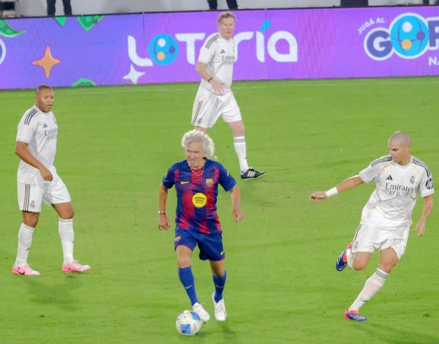 本周末,一場傳奇表演賽在中美洲的薩爾瓦多開踢,巴薩傳奇隊vs皇馬傳奇隊。普約爾、“兔子”薩維奧拉領銜的巴薩傳奇,2-0擊敗皇馬傳奇。43歲的薩維奧拉,上演梅開二度的好戲。67歲的豪爾赫-岡薩雷斯穿上巴薩戰(zhàn)袍,贏得現(xiàn)場球迷的陣陣歡呼聲。