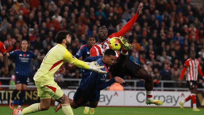 易邊再戰(zhàn),阿森納掀起猛烈反撲。馬丁·祖比門(mén)迪、佈卡約·薩卡與米克爾·梅裡諾之間頻頻打出快速而精準(zhǔn)的配合,持續(xù)沖擊桑德蘭防線。