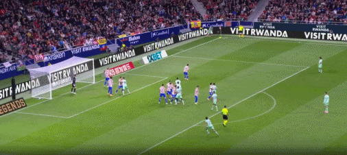 第21分鐘,奧拉薩加斯蒂開(kāi)出角球,馬努-桑切斯破舊主,萊萬(wàn)特1-1馬競(jìng)