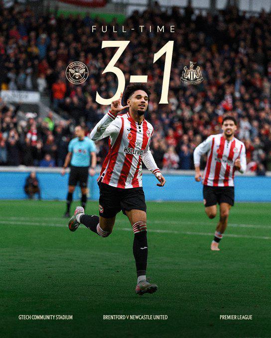 英超第11輪,佈倫特福德主場迎戰(zhàn)紐卡斯?fàn)柭?lián)。第27分鐘,巴恩斯禁區(qū)內(nèi)連扣兩將破門。第56分鐘,卡約德右路邊線祭出大力手拋球,波普防守失誤,沙特“背”射破門,小蜜蜂成為2008年的斯托克城以來,首支憑“手榴彈”戰(zhàn)術(shù)在英超主場取得6球的球隊。第72分鐘,丹·伯恩因在禁區(qū)內(nèi)放倒單刀的伊戈爾·蒂亞戈染紅,小蜜蜂獲點,埃迪·豪緊急換門,拉姆斯代爾替下波普,未能阻擋蒂亞戈命中。全場補時第5分鐘,紐卡回防失誤,蒂亞戈笑納大禮。小蜜蜂3比1十人紐卡。