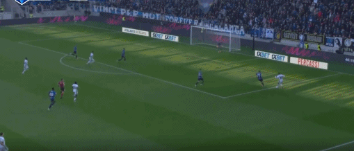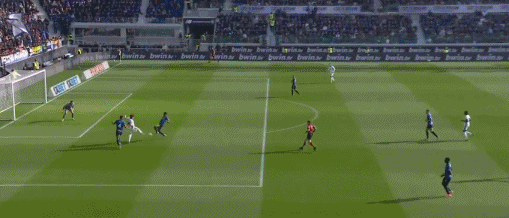 第29分鐘,皮納蒙蒂造點,貝拉爾迪主罰命中,薩索洛1-0亞特蘭大