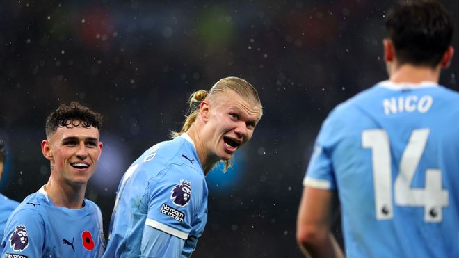 第29分鐘,努內(nèi)斯邊路傳中,科納特頭球冒頂,皮球被動砸在哈蘭德的頭上,頂出拋物線,頂進死角。