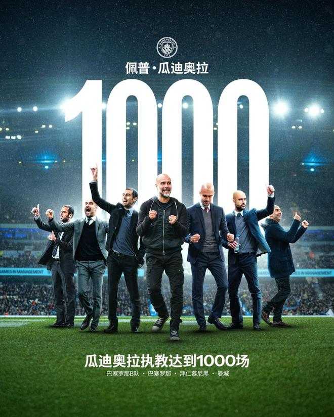 對瓜迪奧拉來說,主場對陣利物浦一戰(zhàn)有著特殊的意義,這是他執(zhí)教生涯的第1000場比賽,他也成為英國足球史上第39位執(zhí)教達到1000場的主教練。