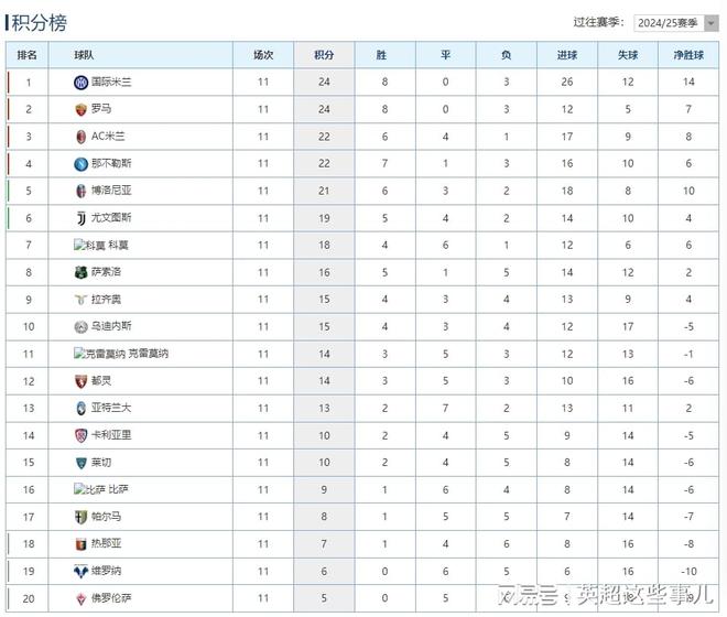 意甲最新積分榜:國際米蘭豪取3連勝登頂,那不勒斯連續(xù)3場不勝!