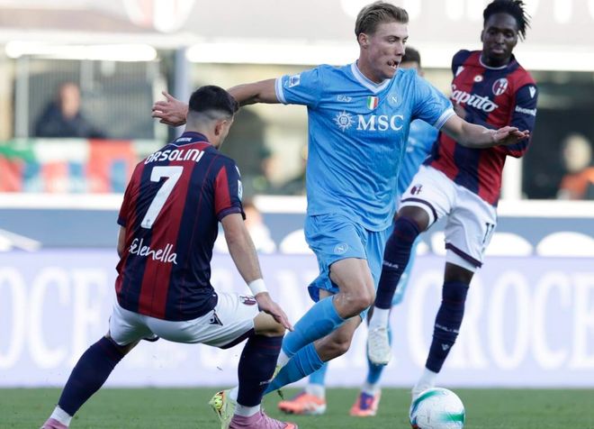 本場(chǎng)比賽那不勒斯排出433陣型。埃爾馬斯、霍伊倫和波利塔諾組成進(jìn)攻三叉戟。麥克托米奈、洛博特卡和安古伊薩組成3中場(chǎng)。古鐵雷斯、佈翁焦?fàn)栔Z、拉赫馬尼和迪洛倫佐4後衛(wèi)首發(fā)出戰(zhàn)。瓦尼亞-米林科維奇-薩維奇擔(dān)任首發(fā)門將。那不勒斯首發(fā)陣容總身價(jià)2.83億歐元。而博洛尼亞首發(fā)陣容總身價(jià)1.53億歐元。