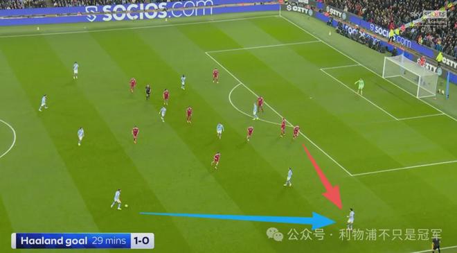 哈蘭德進(jìn)球的時間是28分30秒。在此前1分鐘,也就是27分30秒左右,利物浦還在前場逼搶,一度將曼城逼到自己的角球區(qū),但曼城球員通過連續(xù)短傳配合,輕松瓦解瞭利物浦的前場逼搶,並很快轉(zhuǎn)入反擊。