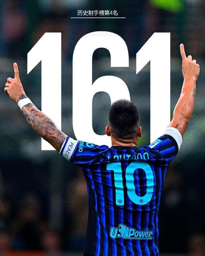 本場比賽的進(jìn)球,也讓勞塔羅的藍(lán)黑軍團(tuán)生涯進(jìn)球總數(shù)來到161球,國米隊(duì)長與藍(lán)黑名宿馬佐拉一起,目前並列位居國米隊(duì)史第四射手的寶座。這位阿根廷射手,正用一個(gè)個(gè)進(jìn)球,一步步將自己鑄就成為俱樂部的活傳奇。