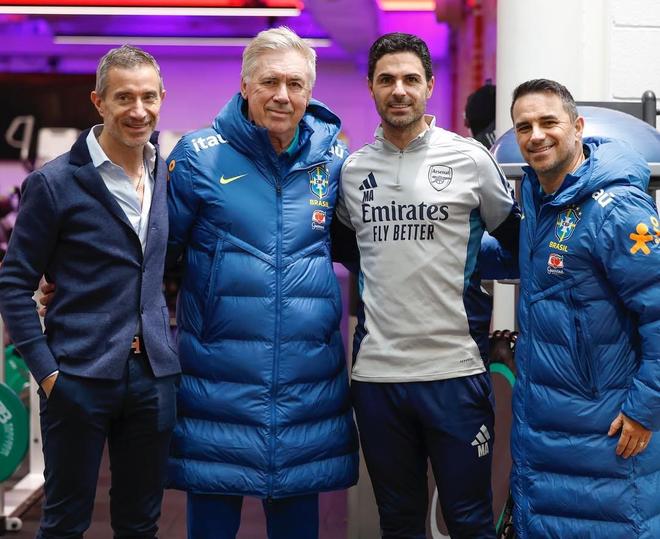 巴西隊(duì)在阿森納基地訓(xùn)練,安切洛蒂與阿爾特塔會(huì)面並合影