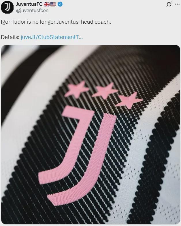 尤文剛剛宣布解雇了圖多爾。